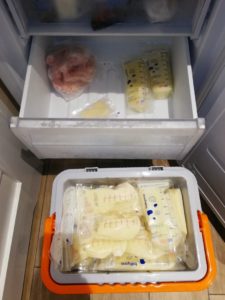 Zamrożone w woreczkach / pojemnikach mleko należy układać w czystej i suchej komorze lodówki bezpośrednio po wyjęciu z zamrażalnika. Następnie dokładnie zamknąć lodówkę. W miarę możliwości podłączyć lodówkę do gniazdka prądu w samochodzie. W przypadku krótkiej podróży podłączenie lodówki może okazać się niekonieczne. Jednak pokonując dłuższą trasę – szczególnie w okresie upałów – warto zadbać o swobodny dostęp do gniazdka.